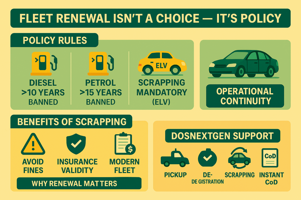 Fleet renewal is no longer a choice—it’s policy. Comply confidently, operate responsibly, and lead India’s transition to cleaner roads with DosNextGen India Private Limited.