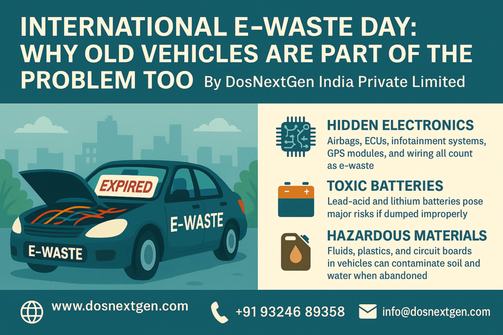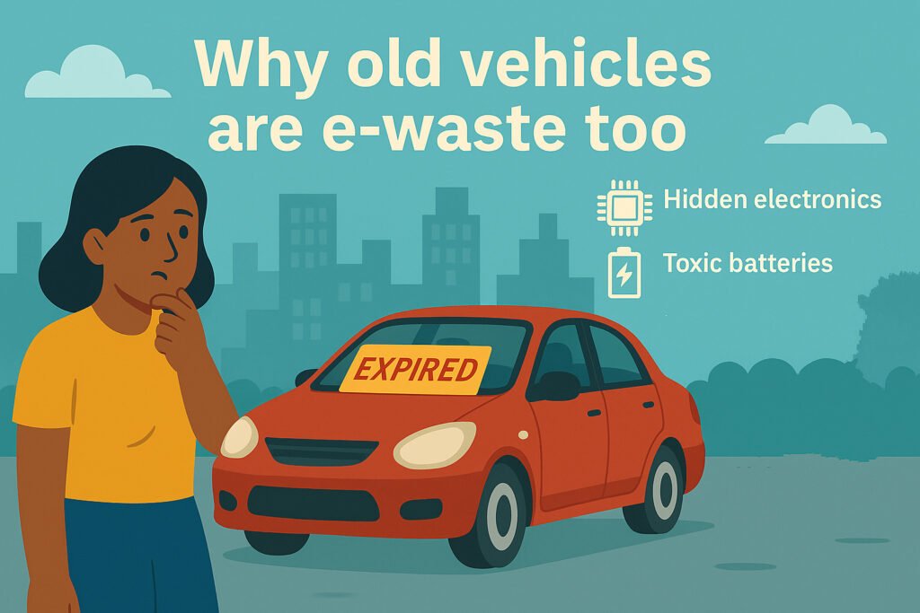 Every year, 14 October marks International E-Waste Day, a global reminder of the growing challenge of electronic waste. While most people think of discarded laptops, phones, or appliances, one major contributor is often overlooked—vehicles. Modern cars, buses, and two-wheelers are packed with electronics, from dashboards to wiring harnesses, batteries to sensors. When these vehicles reach the end of their legal life, they become electronic waste on wheels.