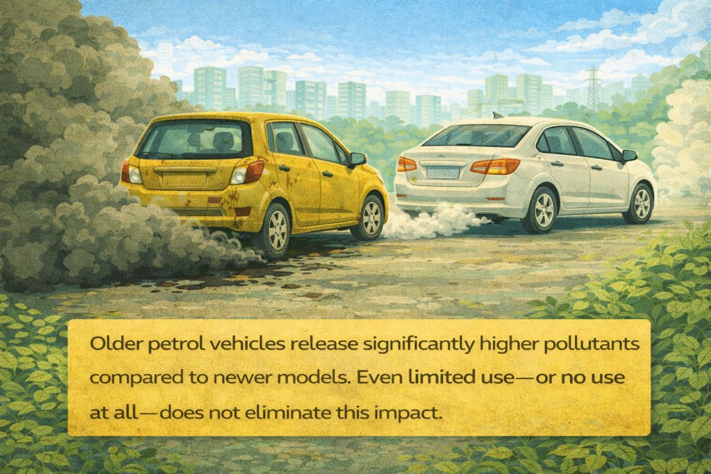 Older petrol vehicles release significantly higher pollutants compared to newer models. Even limited use—or no use at all—does not eliminate this impact. Fuel residues, deteriorating components, and inefficient engines continue to affect air and soil quality. Retiring such vehicles is not just a legal step; it is an environmental responsibility.
