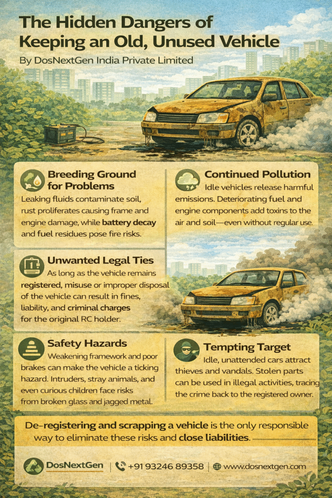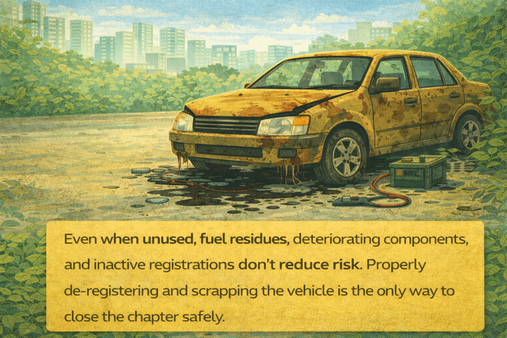 Informal disposal may seem convenient, but it offers no closure. Without proper de-registration and certification, the vehicle’s legal existence continues. Legal scrapping ensures that the vehicle is permanently removed from records and dismantled in an environmentally compliant manner.