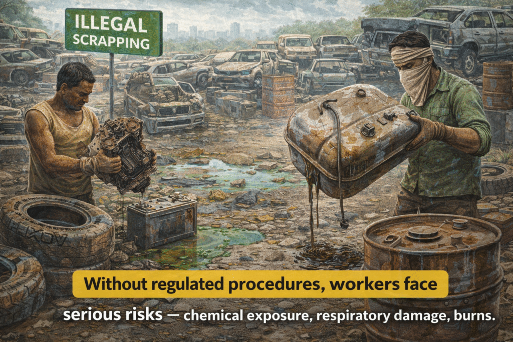 Illegal scrapping sites frequently operate outside environmental compliance zones. The consequences include: